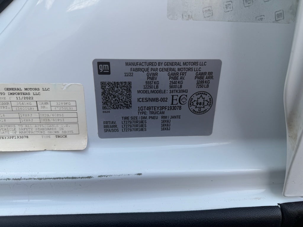 SLE Convenience Package: LED Cargo Area Lighting; Remote Vehicle Starter System; 10-Way Power Driver Seat Adjuster with Lumbar; Electric Rear-Window Defogger; Dual-Zone Automatic Climate Control; Unauthorized Entry Theft-Deterrent System; Manual Tilt-Wheel/telescoping Steering Column; Heated Steering Wheel; 2nd Row Dual USB Charge-Only Ports; Keyless Open and Start; Electrical Lock Control Steering Column; LED Fog Lamps; Heated Driver and Front Outboard Passenger Seats; Front 40/20/40 Split-Bench Seats with Lockable Storage; 12-Volt Rear Auxiliary Power Outlet. Preferred Equipment Group 3SA: Cloth Seat Trim; 6. 350 Kgs (14. 000 Lbs) GVWR; Chrome Surround Grille with High Gloss Black Mesh; Compass Located in Instrument Cluster; Suspension Package; Chrome Wheel Trim Skins and Chrome Centre Caps; Steering Wheel Audio Controls; GMC Connected Access Capable; OnStar and GMC Connected Services Capable; Power Front Windows with Passenger Express Down; Remote Keyless Entry; 2-Speed Electronic Shift Transfer Case; Deep-Tinted Glass; AM/FM Radio with GMC Infotainment System; Power Rear Windows with Express Down; Integrated Trailer Brake Controller; 17" Painted Steel Wheels; SiriusXM; Manual Tilt Wheel Steering Column; Power Front Windows with Driver Express Up/down; Wi-Fi Hotspot Capable; Power Door Locks. 10-Way Power Driver Seat Adjuster with Lumbar. LED Fog Lamps. Electric Rear-Window Defogger. Power-Adjustable Vertical Trailering Mirrors. Skid Plates. LED Cargo Area Lighting. **Equipment listed is based on original vehicle build and subject to change. Please confirm the accuracy of the included equipment by calling the dealer prior to purchase.**
