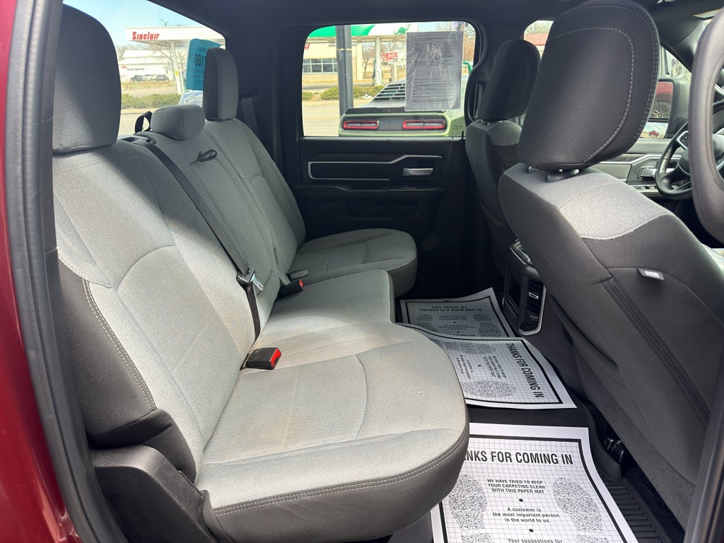 Quick Order Package 2HZ Big Horn. Level 1 Equipment Group: Google Android Auto; SiriusXM Radio Service; Bluetooth® Handsfree Phone and Audio; Integrated Center Stack Radio; For Details. Visit DriveUconnect.com; For More Info. Call 800-643-2112; Leather Wrapped Steering Wheel; Rear Dome with On/off Switch Lamp; Front Fog Lamps; Integrated Voice Command with Bluetooth®; Connectivity - US/Canada; Glove Box Lamp; Auto Power-Folding Mirrors; Footwell Courtesy Lamp; 4G LTE Wi-Fi Hot Spot; GPS Antenna Input; Exterior Mirrors with Heating Element; Global Telematics Box Module; Mirror Running Lights; Uconnect 5 W Radio with 8.4" Display; 8.4" Touchscreen Display; Foam Bottle Insert (door Trim Panel); Black Exterior Mirrors; 18" X 8.0" Polished Aluminum Wheels; Apple CarPlay; Big Horn Instrument Panel Badge; Power Adjustable Convex Aux Mirrors; Forward and Reverse Utility Lights; Locking Lower Glove Box; Selectable Tire Fill Alert; SiriusXM Satellite Radio; Power Heated Fold Telescope Mirrors; Exterior Mirrors with Supplemental Signals; Steering Wheel Mounted Audio Controls; Exterior Mirrors Courtesy Lamps; Dual Glove Boxes; Center Hub; Power Adjust Mirrors; 2nd Row in Floor Storage Bins; Power Telescoping Mirrors. Protection Group: Tow Hooks; Transfer Case Skid Plate Shield. Premium Cloth Bucket Seats. Remote Start System. Delmonico Red Pearlcoat. Front Fog Lamps. MOPAR Front and Rear Rubber Floor Mats. Tow Hooks. **Equipment listed is based on original vehicle build and subject to change. Please confirm the accuracy of the included equipment by calling the dealer prior to purchase.**